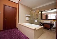 豪华套房(6间)位于酒店11层—12层,面积为100㎡,房内有大床1张2x1.8m,一主卧,两卫生间, 一客厅,开放式浴缸。