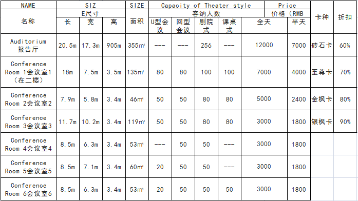 会议室均配备国际水平的设施设备。免费提供茶水、投影、铅笔、信签纸、白板、话筒、音响、屏幕、幻灯机、会议指示牌、大堂欢迎水牌、会议管家服务。