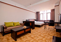 豪华单间(44间)位于酒店3层—12层,面积为50㎡,房内有大床1张2x1.8m,一大床,独立卫生间。