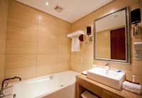 豪华标间(96间)位于酒店4层—13层,面积为33.6㎡,房内有床2张2x1.35m,一室一卫。