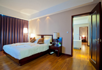 专家公寓套房(6间)位于酒店14层—16层,面积为109㎡,房内有大床2张2x1.8m,两室一厅一厨两卫。