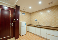 公寓套房(6间)位于酒店14层—16层,面积为70㎡,房内有大床1张2x1.8m,一室一厅一厨一卫。